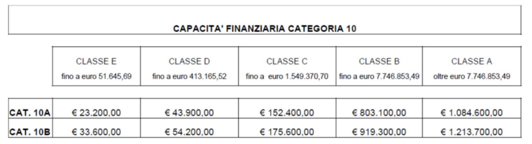 il loro “controvalore” minimo, in funzione della categoria 10A e/o della 10B alla quale ci si voglia iscrivere (v. Fig. 2, che illustra un riepilogo di quanto trattasi).