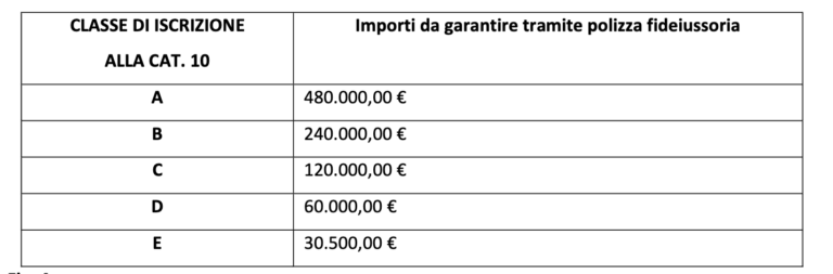 - deve essere garantita, a favore del Ministero dell’Ambiente, la somma prescritta in funzione della categoria d’iscrizione, secondo lo schema visualizzato in Fig. 4;